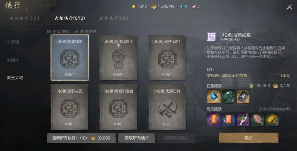 侠行任务的主要奖励包括大量经验值、金币、绑定神石、强化石碎片、星光剑灵召唤券等丰厚奖励,随机奖励包括高品质饰品、灵药、秘诀、金条等奖励,这些奖励的丰厚程度均根据侠行的品质而定。每天完成侠行都可以获得12抽的奖励,而抽卡资源是相当紧缺的,灵芝可以什么都不做,但侠行一定要抽时间做一下。
