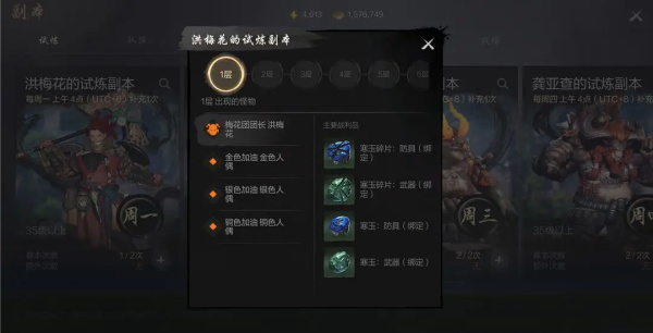 挑战试炼副本可以获得强化石碎片、灵药、秘诀等奖励,奖励根据不同的试炼副本而定,每个试炼副本都有15层,层数越高,奖励越丰富,难度也会更高。试炼副本的次数最多可以储存2次,如果灵芝们资源紧缺或下一天没有时间上线,可以一次性将试炼副本的次数都用完,以免次数溢出造成资源浪费。