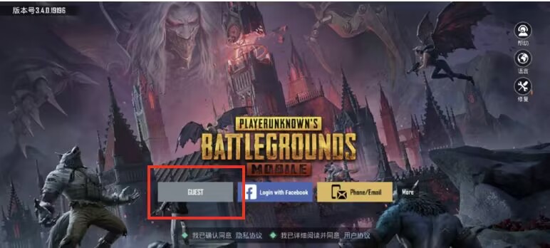 2、在游戏登录界面选择“GUEST”登录,进入游戏。(拔掉SIM卡才可以游客登录)