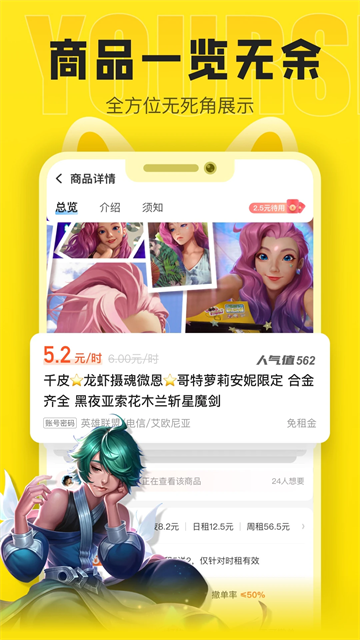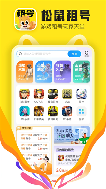 松鼠租号app是一个专业的高端游戏账号服务平台,百万精品帐号任意选择,大神账号应有尽有,一键快捷上号享极致租号体验,超千万用户选择。松鼠租号提供当下热门游戏(王者、lol、和平精英等)、火爆新游的账号出租,绝版皮肤、全套武器、V8大神账号,满足你对理想账号的所有要求!