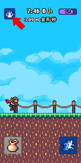1、下载并打开游戏后等待其游戏剧情结束,之后就需要我们不断的拾取金币,拾取金币后,点击左下角的袋子