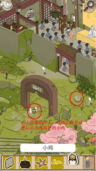下方是你需要用寻妖术找的东西,这些都能在场景里找到。