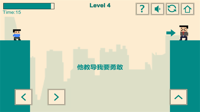 5、简单的三个按键控制人物的左右移动和跳跃即可控制人物的各种行动;玩家需要做的就是让自己完美的通过操作,让自己不断的前进吧