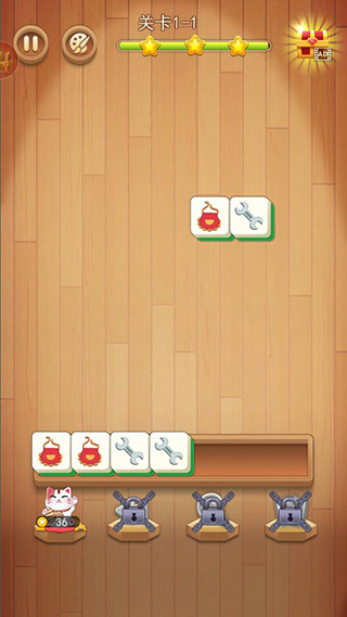 2、玩法:只需点按即可将方块放入堆槽中。三个相同的方块(例如三个草莓)即可匹配消除。