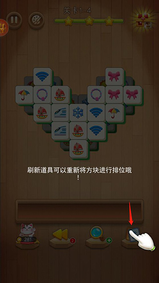 6、另外您还可以利用下面的道具来帮助你通关,比如这个寻找配对道具可以配对方块自动消除;