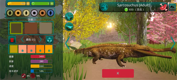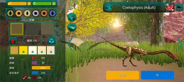 2、首先,玩家需要选择一种恐龙。 请记住 - 这是您个人的恐龙! 在恐龙游戏中,不仅有肉食性恐龙和草食性恐龙,还有会飞的恐龙,例如翼手龙,玩家可以与自己物种的食肉动物联合成群,以抵抗其他物种,最重要的是,生存!