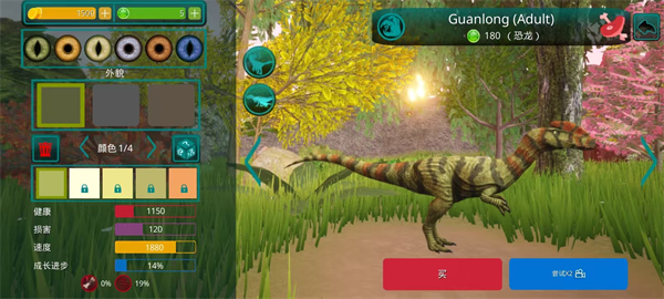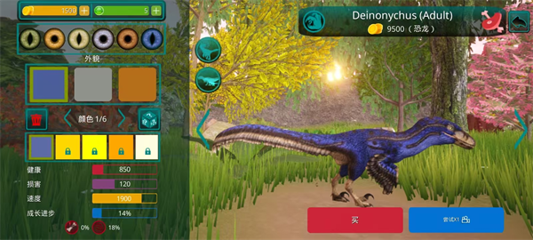 1、成长系统! 恐龙不会立即显得很大,需要照顾。 你需要培养他。 为此,你需要生存、寻找食物和饮料,并避免来自其他肉食恐龙(例如巨龙、重爪龙或暴龙)的潜在威胁。