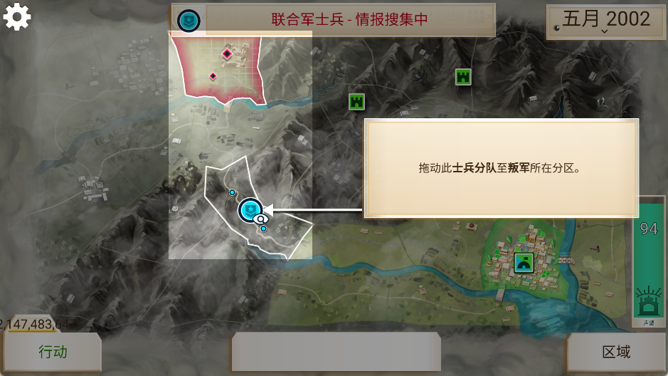 不要歼灭所有叛军会比较好,留给叛军的地最好在人不多的山区里面,毕竟山上人少没人权。宁愿让他在山里玩耍,也不要来城市里给你乱搞一通,就当养放山鸡一样。每张地图都有一些适合的地方,但也跟叛军刷新的位置,还有兵力是否能处理有关,所以不能一体适用。但理想上最多到四块山区,可以用较少的兵力围住。原则上稳定区域越多,给叛军的地就越少,未稳定区域越多,越要给叛军respect,不然你逼急了,叛军直接出现在战线后方会很难处理。