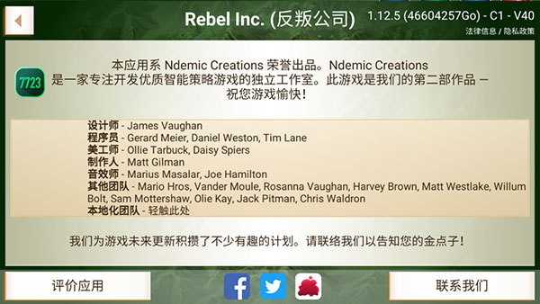 v1.16.5反叛公司是一款以现代地缘冲突为背景的策略模拟手游,由《瘟疫公司》开发团队打造。相比前作以“病毒扩散”为核心的反向视角玩法,反叛公司将镜头转向国家治理本身,把玩家放在“执政者”的位置上,直面稳定、民生、军事与舆论交织而成的复杂现实。游戏核心并非单纯消灭敌人,而是在反叛势力滋生前稳住人心,玩家需要在一片动荡地区建立主基地,通过投资民生项目改善支持率。此外,游戏中引入的腐败率、通货膨胀、国际干预等系统,让整体体验更偏向政治与社会治理模拟。