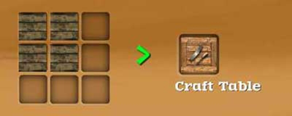 制作工作台的工序比较简单,只要用到木板这一种遍地都是的材料,摆放位置如图所示。合成公式无需解锁,在游戏开始时就可以直接制造。