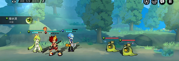 游戏的战斗模式就是靠伙伴进行战斗,战斗模式是横板回合制的样式,在战斗环节每次最多可以上场三名伙伴,三名伙伴会更具速度属性依次攻击,速度快的在前方速度慢的在后面,敌人也同样如此,因为是回合制的原因所以必定有先手和后手的差别,游戏里每个伙伴都有大招点,大招点数为五点,这个点数会更具回合制变化,每一回合可以增加一点,满五点之后可以释放角色的专属大招,另外游戏里有克制系统,这个大家应该有所了解,在战斗中需要注意下敌方的属性,要更具克制属性调整自己的队伍进行战斗。