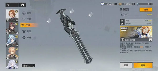权钥是角色培养中最烧资源、钱的一个方面。稍微强化一下后可能就会消耗掉上万的游戏币数量。