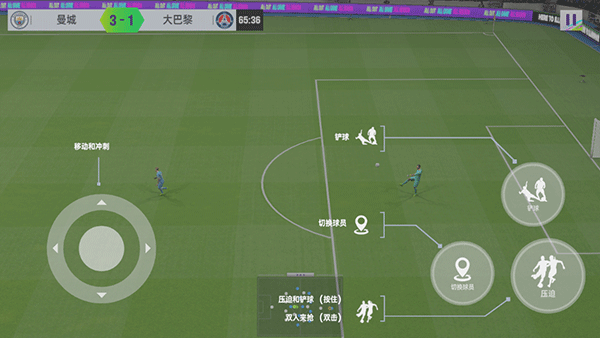 2、当门将出击的时候,如果有队友跟进,就传球打空门。没队友就点射门后立即点传球,可以晃倒门将。这样大大提高进球可能。