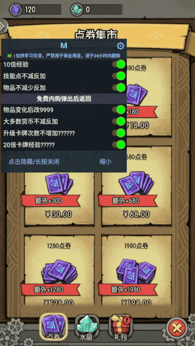 贪婪洞窟破解版已内置作弊菜单,支持玩家修改无限钻石金币、伤害提高等功能。
