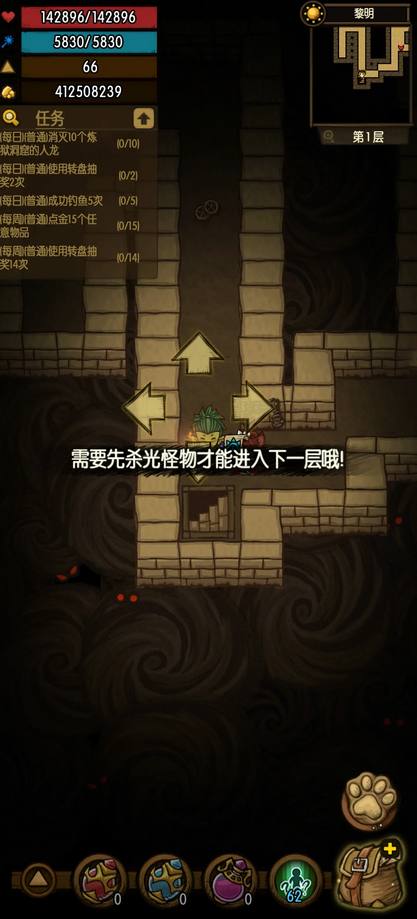 逃脱卷轴是你离开洞窟唯一的物品,请务必尽快找到它!因为在洞窟内死亡后你将一无所获——所有辛苦打怪升级的经验、守财奴般积攒的金币、让你欣喜若狂的顶级宝物都将伴随你的死亡埋葬。