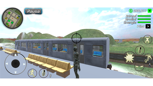 11、切换武器移动屏幕瞄准物体或者是汽车进行攻击,破坏公共场合会有警察来抓捕你。