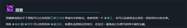玩家可使用的基础资源有四种,即健康、理性、激情、资金。许多操作将会消耗这些资源,其中前三者属于能力,通常不会真正消耗,只是需要时间恢复;资金则需要通过各种渠道补充。