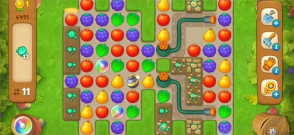 欢迎来到梦幻花园第6491关!本关目标收集36个翡翠,步数限制28步,难度适中。合理利用传送门、水管与加速道具,巧妙合成彩虹弹,助你轻松通关!