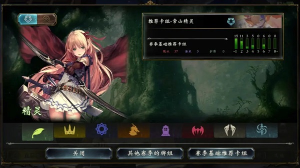 游戏卡牌分类为中立、精灵、皇家护卫、巫师、龙族、唤灵师、暗夜伯爵、主教、超越者。