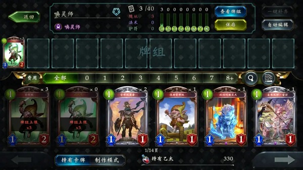 需要注意,不管是什么稀有度,每张卡在卡组放置的上限是3张,而一副卡组需要放置总共40张卡才能进行对战。