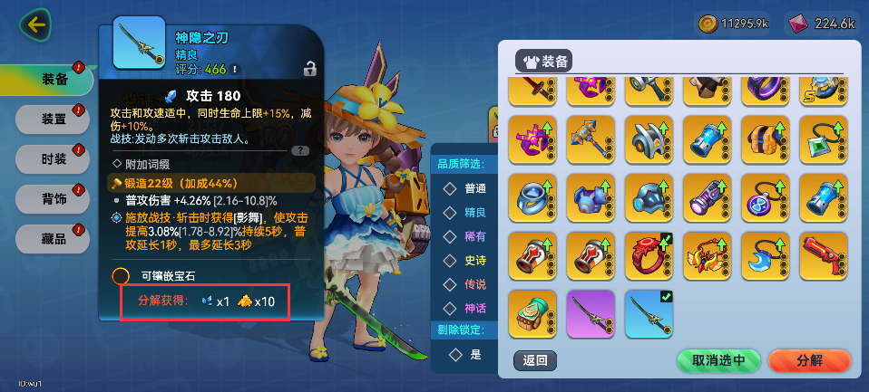 5) 降级装备和分解装备