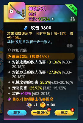 在背包中或者装备栏可以一键强化装备,强化装备需要消耗对应的芯片和金币。