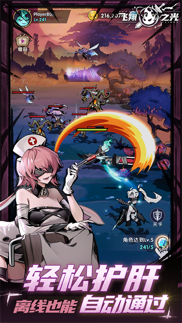 飞翔之光0.1折版是一款全新RPG放置手游,玩家将在这个充满惊奇和危险的世界里,扮演一个失去了自己头颅的骑士,遇到各种各样的敌人和环境,从广袤森海到火炎地狱,从绝望沼泽到深海牢笼,去寻找属于你的那个头颅!