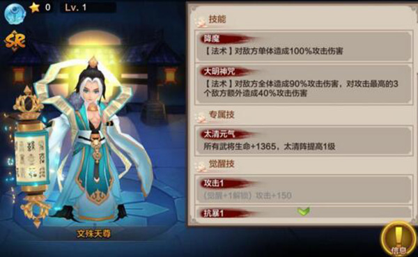 -文*殊*天*尊:全体攻击,重点打击攻击最高的3个敌方。先有效解决厉害的敌人,降低我方承受的伤害。他的专属技,加所有武将生命,也是很不错的。