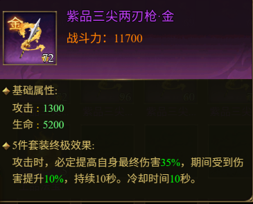 (2)三尖两刃枪:攻击必定大幅度提升自身伤害,但是同时提高自身受到的伤害