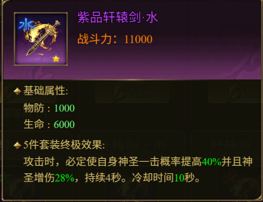 (1)轩辕剑:攻击必定提升自身神圣一击概率,并且提高自身神圣一击伤害