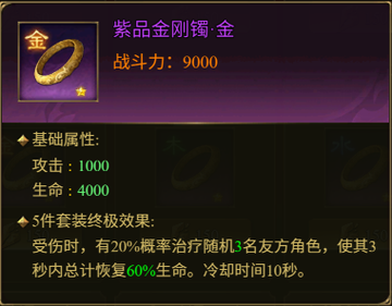 (4)金刚镯:受伤时,概率治疗多名友方角色,持续恢复生命值
