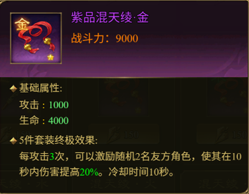 效果解析:辅助向的输出法宝,伤害加成的效果有一定随机性,但是对于整个队伍来说,可以有效的提高队伍输出能力