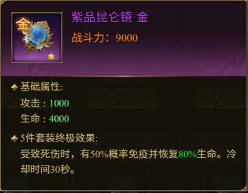 (3)昆仑镜:受到致死伤害,概率免疫并且回复生命值