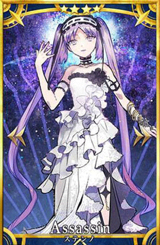 斯忒诺 :斯忒诺 同样大招没有伤害 虽然有即死但是竟然是男性限定的即死 整体基本上没有什么战斗力倒是很符合人物设定 不过因为技能魅惑和大招魅惑加上比较高的NP获取率 在某些特殊场合作为对男性的持续控制角色还是有价值的 可惜国服目前只有巴萨卡怼他 一个选项 所以没有任何价值