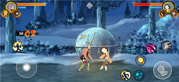1、打开火柴人鬼灭之刃内置修改器最新版,我们先来感受一下格斗玩法,使用操纵杆移动你的角色。