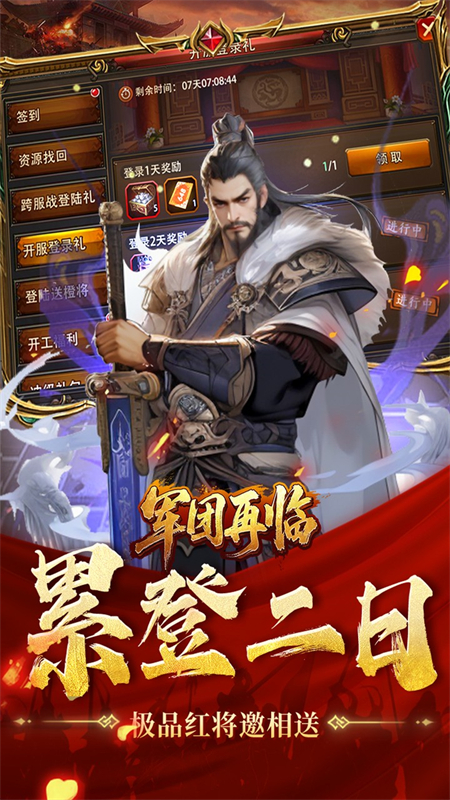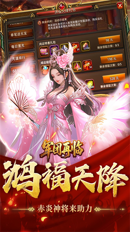 7、【全新惊喜】鸿福从天而降,超强神将赤炎孙策强势助力,成就你的三国霸业。