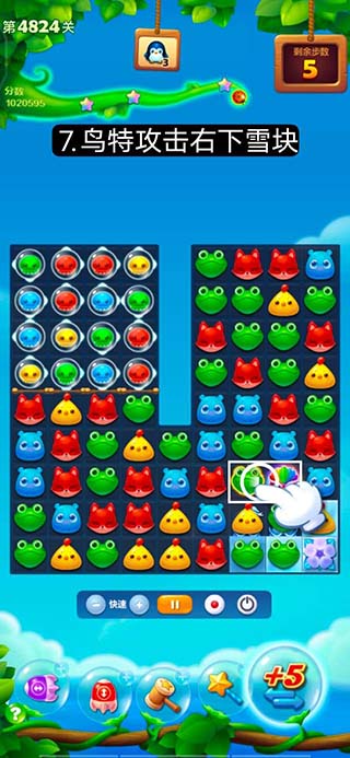 4、巧用魔力鸟:观察当前场上及任务色块,有限步数内优先消除大面积色块,触发新色块刷新。魔力鸟就像“洗牌”工具,不要囤积,灵活使用可能带来幸运通关。