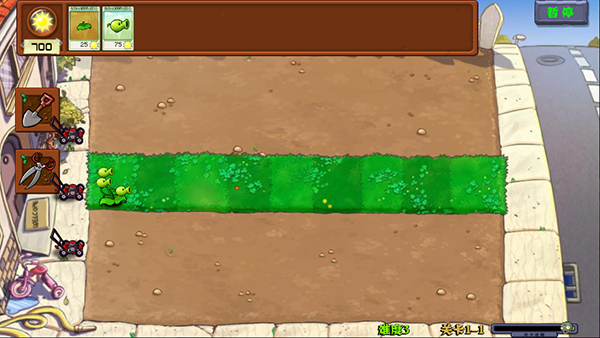 5、先叠种三次的豌豆根,可攻击三条路线,叠种根会额外消耗25阳光。