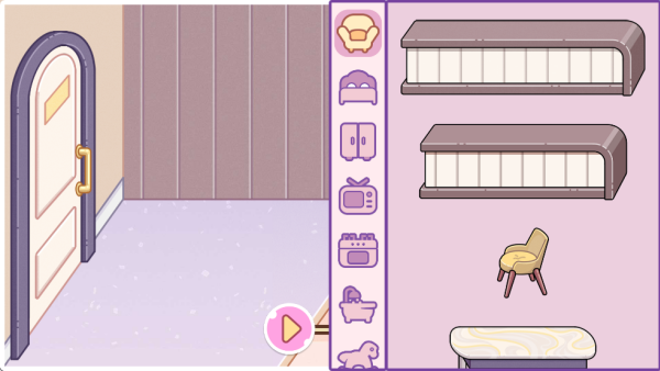 5、通过滑动屏幕,挑选不同的家具与装饰物。