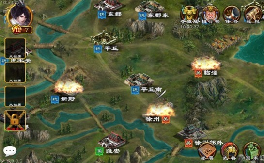 首先,要学会看国战地图,申时度势很重要,不可盲目点集结出击!8将要分开出击,同时进入8个城池杀敌,一轮8人头,效率很高!