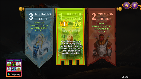 v1.0.4城邦争霸是一款策略塔防类游戏,游戏以中世纪的欧洲为背景,讲述的是在欧洲大陆上发生的各王国之间的战乱纷争,玩家在这里自建建造一个华丽的城堡,在此经营成为一个强大的国家,然后周边的各列强在发现了你建立的城堡之后会对你发起进攻,这个时候你就需要利用排兵布阵的塔防玩法来击败敌人了,游戏将以关卡的模式进行快节奏的战争对抗,你需要做的就是发挥自己的聪明才智,将每一所炮塔布置到恰到好处的地方,因为城邦争霸游戏十分考验玩家的对阵布局,合理的出兵是战胜的关键,利用士兵的克制关系来轻松击败对手,玩起来十分具有策略性,每一场战争都是智慧和技巧的冲锋,你准备好阻止列强的进攻了吗?