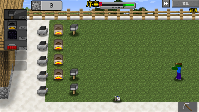 5、跳过后游戏开始,你可以在土地上放置你想放的道具,利用这些道具将僵尸们击退。