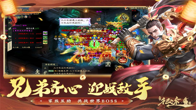 古战场BOSS实力强横,会掉落至尊装备、高级洗练石等道具,是十国都觊觎的移动宝库,只能全家族、全国统战击杀,运气好的玩家更将因此一夜暴富!