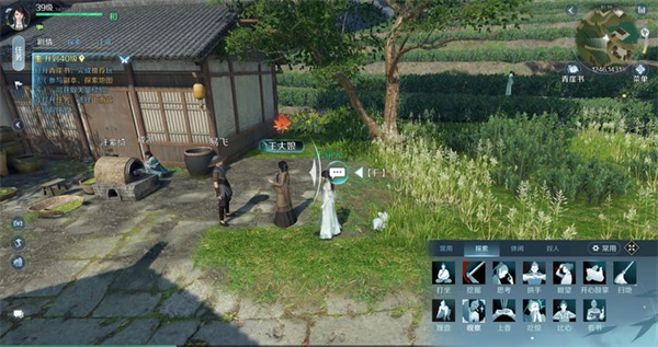 在杭州【1243,1432】npc王大娘附近,使用表情动作【观察】触发
