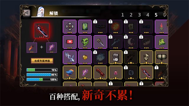 你可以自定义初始技能搭配,并在挺近地牢的过程中不断升级他们,产生强大的组合!
