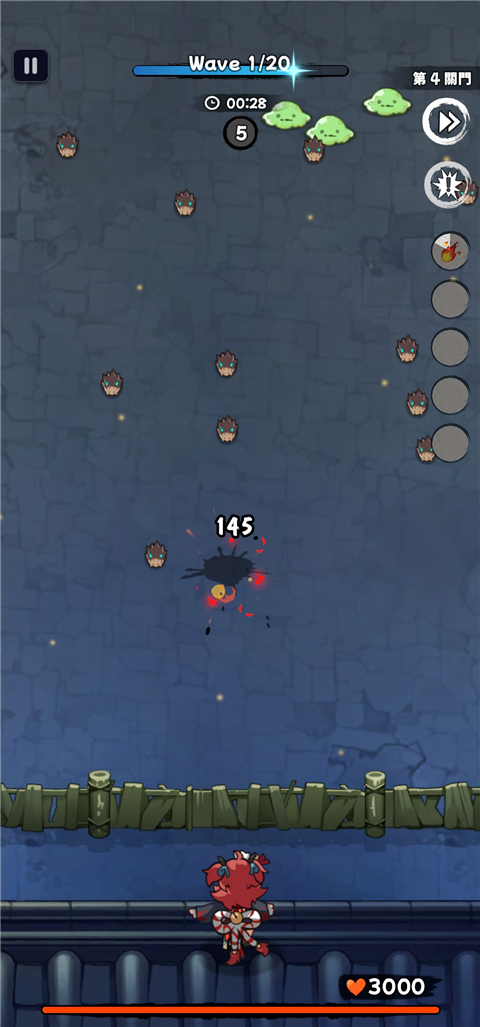 3、界面上方的数值清晰展示了当前敌人波次以及关卡的总波次数,方便玩家掌握战斗进度。