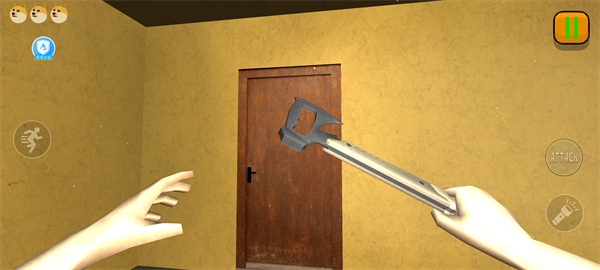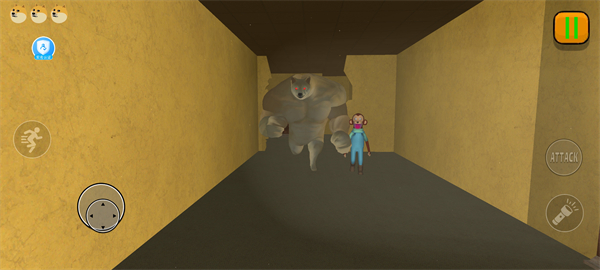 2、游戏操作十分直观:左侧为移动方向与奔跑按钮,右侧则是手电筒和攻击键,方便玩家在探索过程中灵活应对突发情况。