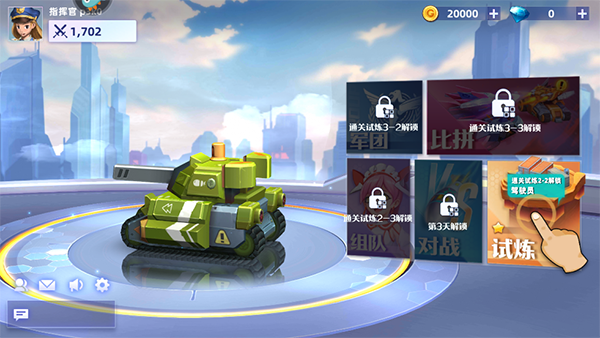 1、点击试炼模式【通关试炼3-2解锁军团、通关试炼3-3解锁比拼、通关试炼2-3解锁组队、第3天解锁对战等一些列模式】