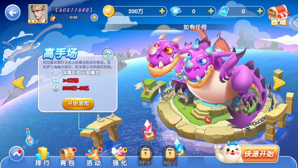 2、巨龙的咆哮--场内所有玩家击杀一定数量的冰霜巨龙和火焰爆龙后可召唤出远古巨龙