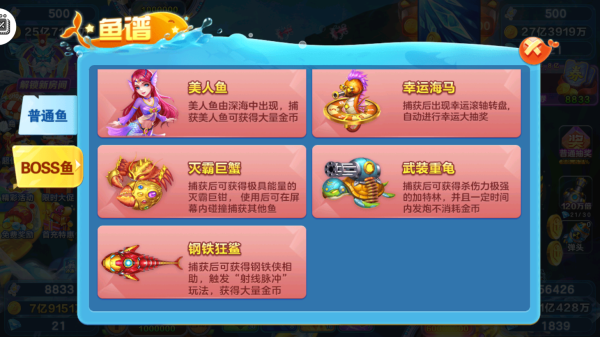 全名街机捕鱼狂暴版鱼谱一览